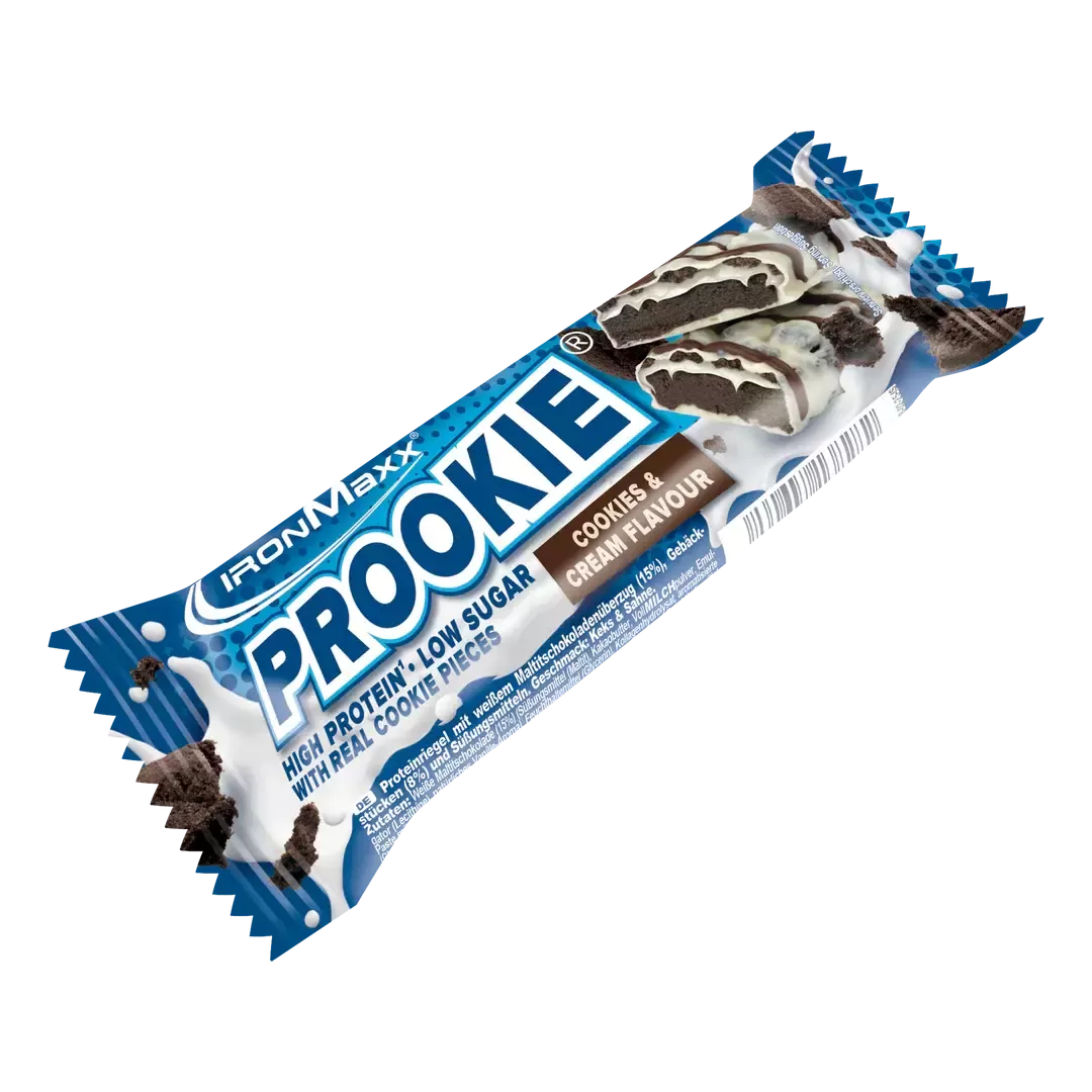 „IronMaxx® Prookie®“ sausainiai su grietinėle turi 30 g aukštos kokybės baltymų 100 g ir tikrą sausainių skonį – tiems, kurie nenori praleisti maistinės vertės užkandžiaudami. Sausainių gabaliukai, kreminė tekstūra ir subtilus baltojo šokolado apvalkalas suteikia skonio pojūtį, nes viename batonėlyje yra tik 1,2 g cukraus. Idealiai tinka kaip užkandis po treniruotės, biure ar keliaujant – „Prookie®“ suteikia baltymų energijos su gardžiu skoniu.