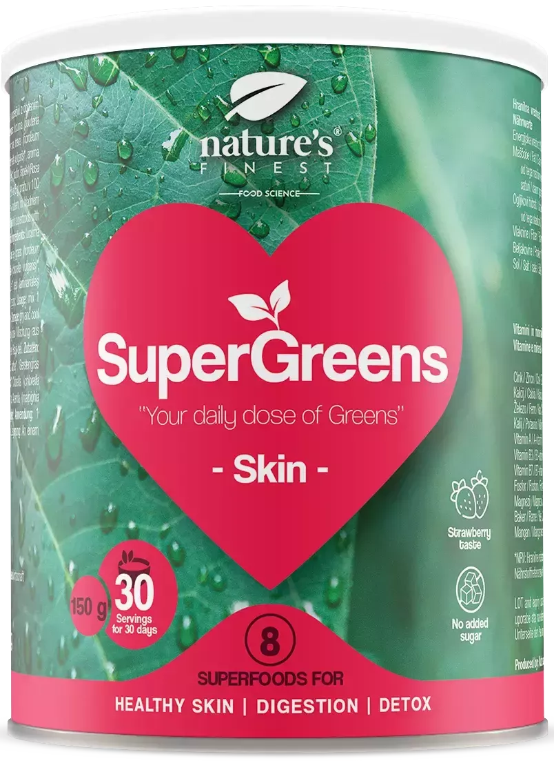 Nature's Finest supermaisto mišinys odai „SuperGreens SKIN“, ekologiškas 150 g.